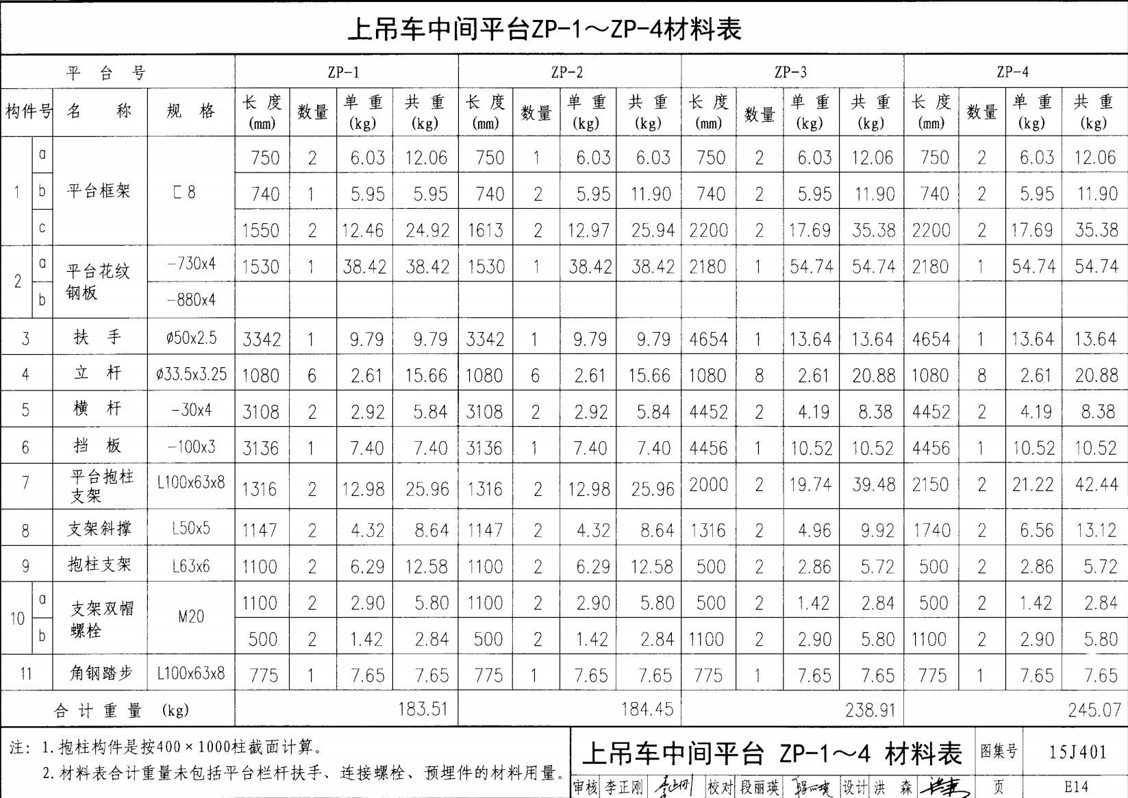 上吊车中间平台ZP-1 ZP-4材料表